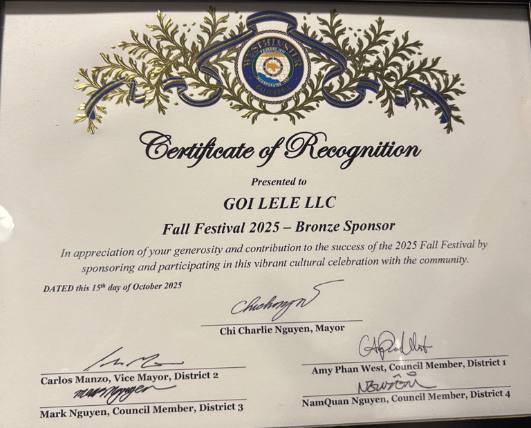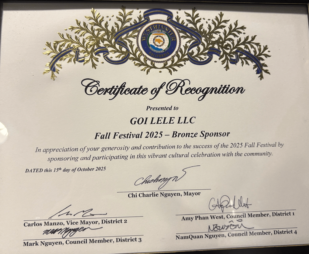 The Fall Festival, one of the most anticipated annual events in the City of Westminster, brings together families, local businesses, and community organizations to celebrate the vibrant Vietnamese American culture. As a sponsor, GOi LeLe was honored for its continued commitment to supporting cultural events and strengthening community connections.